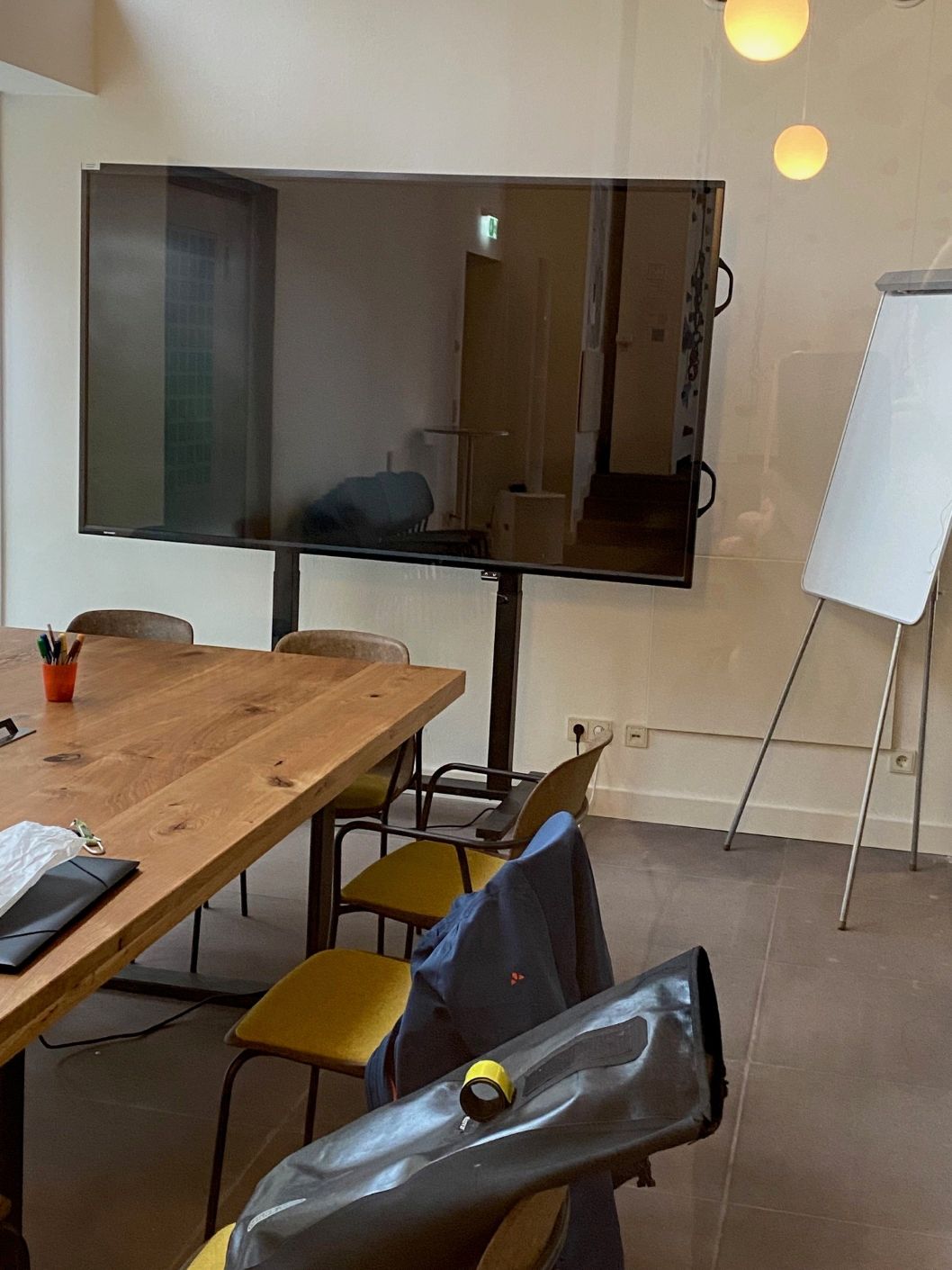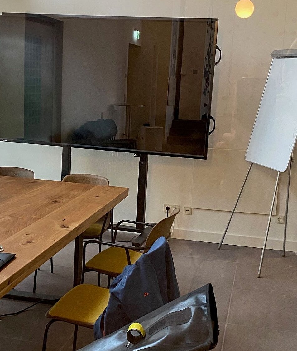 Im Inneren wird auf einer großen, mehrere Meter langen Tafel mit vielen Bildern (z.B. vom Innenraum der Kirche, als dort noch Gottesdienste gefeiert wurden) wortreich auf die Entstehung des neuen DAV Zentrums hingewiesen. Die frühere Nutzung wird deutlich und wertschätzend herausgestellt.