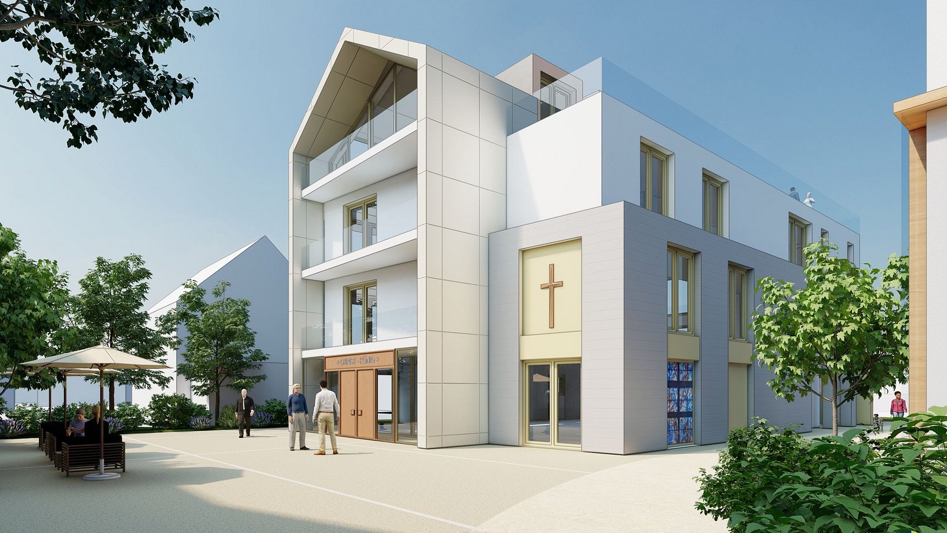- Sicherstellen von „Kirche im Ort“ als sichtbarer Teil eines Quartiers, moderne Kirchenräume für eine moderne Kirche.
