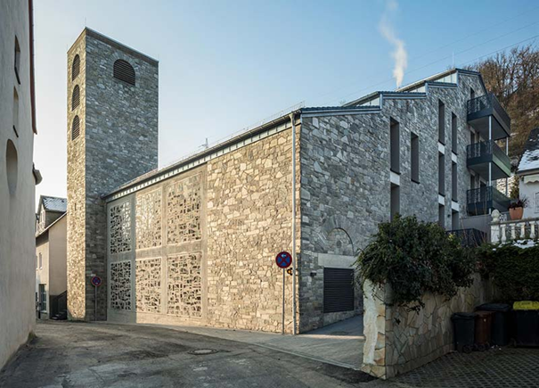 Zusätzlich gibt es eine von außen zugängliche barrierefreie Toilette für die Gottesdienstbesuchenden. Die ebenerdige Parkgarage ist ebenso barrierefrei angeschlossen über einen Aufzug und bietet notwendigen Parkraum für die beengten Ortsverhältnisse.